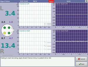 - Проверка импеданса для всех отведений, непрерывная автоматическая оценка качества сигнала и кодированные по цвету тревоги.