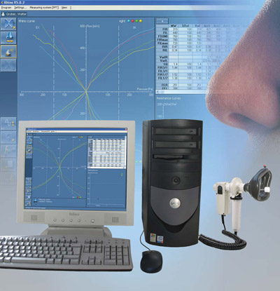 Преимущества системы: Точность определения измеряемых параметров Диагностика и оценка назальной дисфункции Эффективный контроль над проведением физио - или фарм- терапии Назальная провокация Пост-операционный контроль